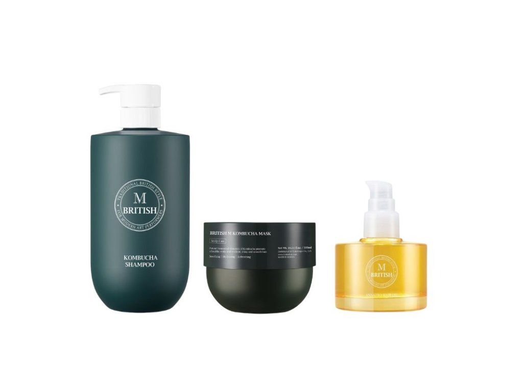 British M - Luxusní korejský vlasový rituál - Kombucha šampon, kombucha kondicionér a annatto oil 3 produkty Hair Butter ZDARMA
