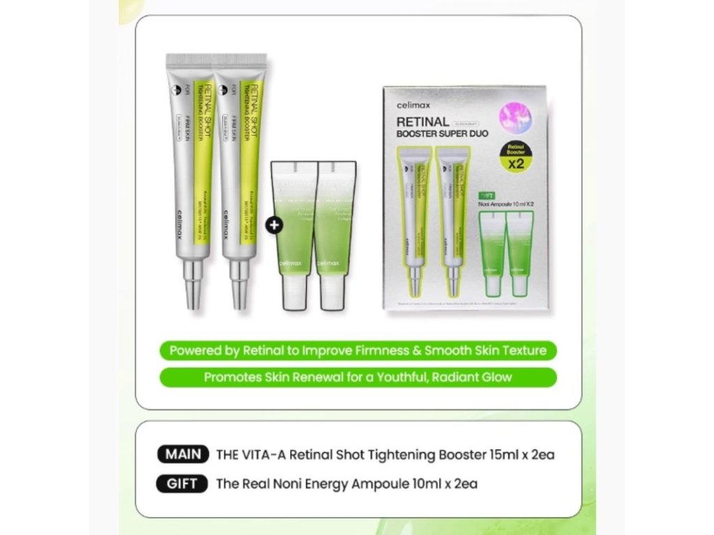 CELIMAX - THE VITA-A RETINAL SHOT TIGHTENING BOOSTER DOUBLE SET - Noční sérum s retinalem a peptidy pro zpevnění pleti 2 x 15 ml plus Real Noni Ampoule 2 x 10 ml