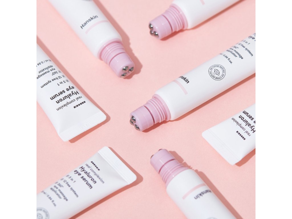 HANSKIN Real Complexion Hyaluron Eye Serum okamžitě chladí, hydratuje a viditelně vyplňuje jemné linky v citlivé oblasti očí. Toto sérum hýčká unavené oči chladivým kovovým aplikátorem, který při masáži snižuje otoky. Jeho bohaté složení dodá vaší pleti hladký a zářivý vzhled.