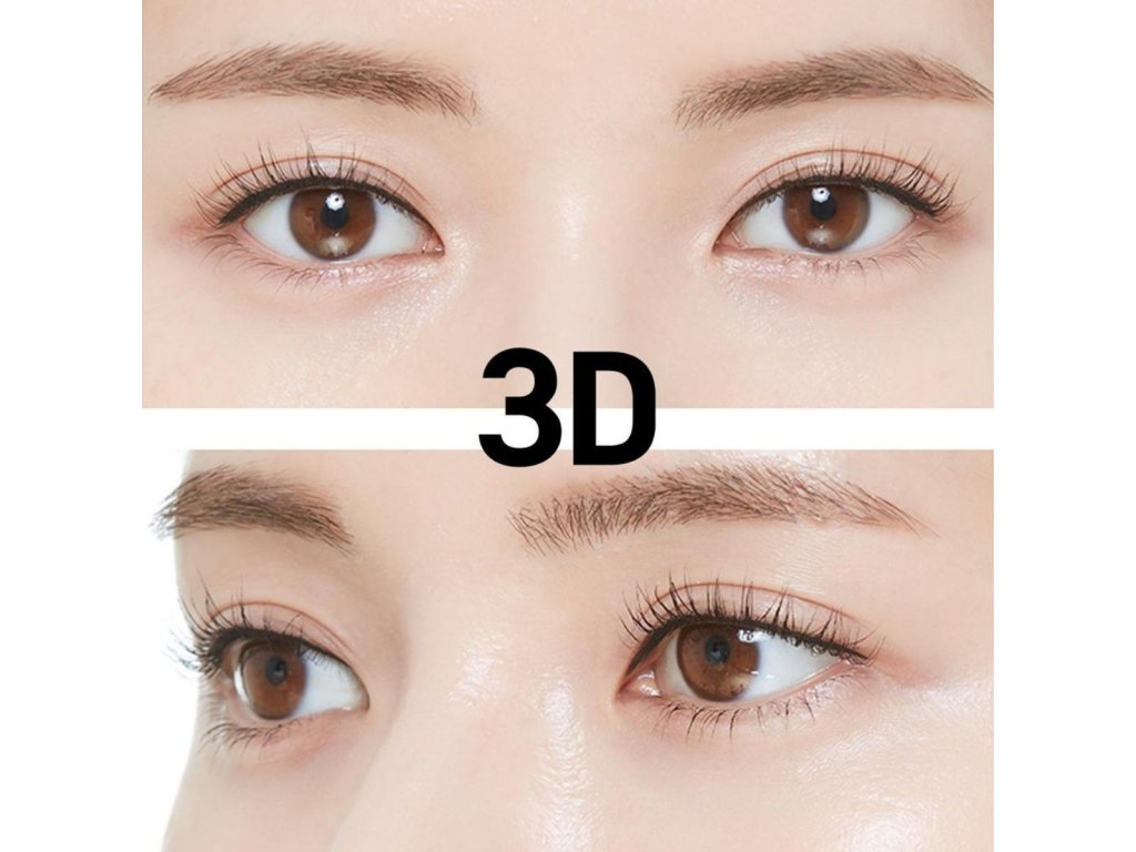 3D kartáček – rovnoměrně rozděluje barvu, natočí a prodlouží každou řasu.