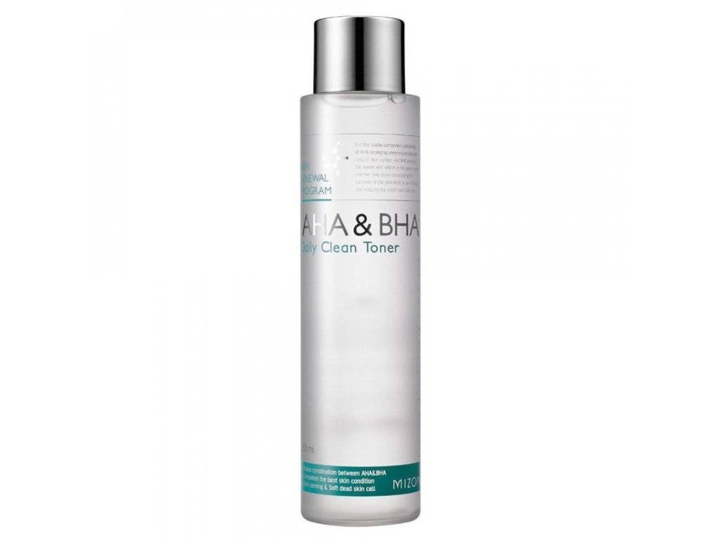 Mizon AHA&BHA Daily Clean toner je jemný čistící a exfoliační toner, který obsahuje ovocný komplex AHA kyselin a kyselinu salicylovou (BHA). Tento unikátní toner efektivně odstraňuje odumřelé kožní buňky, obnovuje přirozenou hladinu pH pokožky a připravuje pleť na účinnou absorpci dalších péčí. Vhodný pro všechny typy pleti, včetně mastné, aknózní a stárnoucí pleti s prvními vráskami nebo hyperpigmentací.