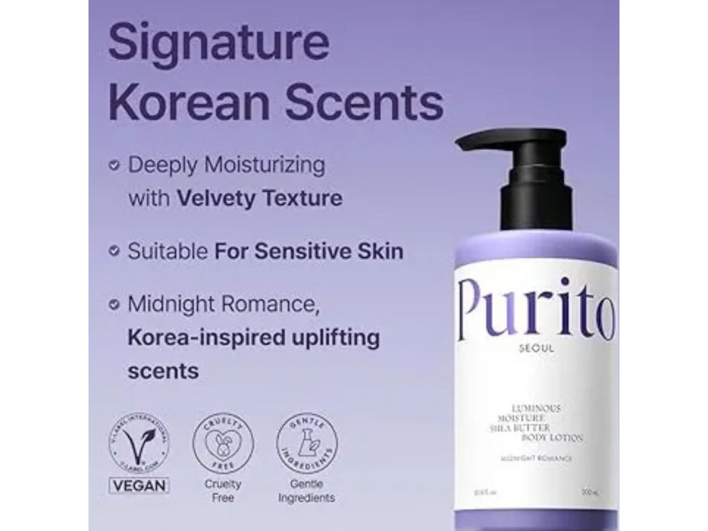 PURITO SEOUL - LUMINOUS MOISTURE SHEA BUTTER BODY LOTION MIDNIGHT ROMANCE - Tělové mléko s bambuckým máslem a vůní Noční romantika 300 ml