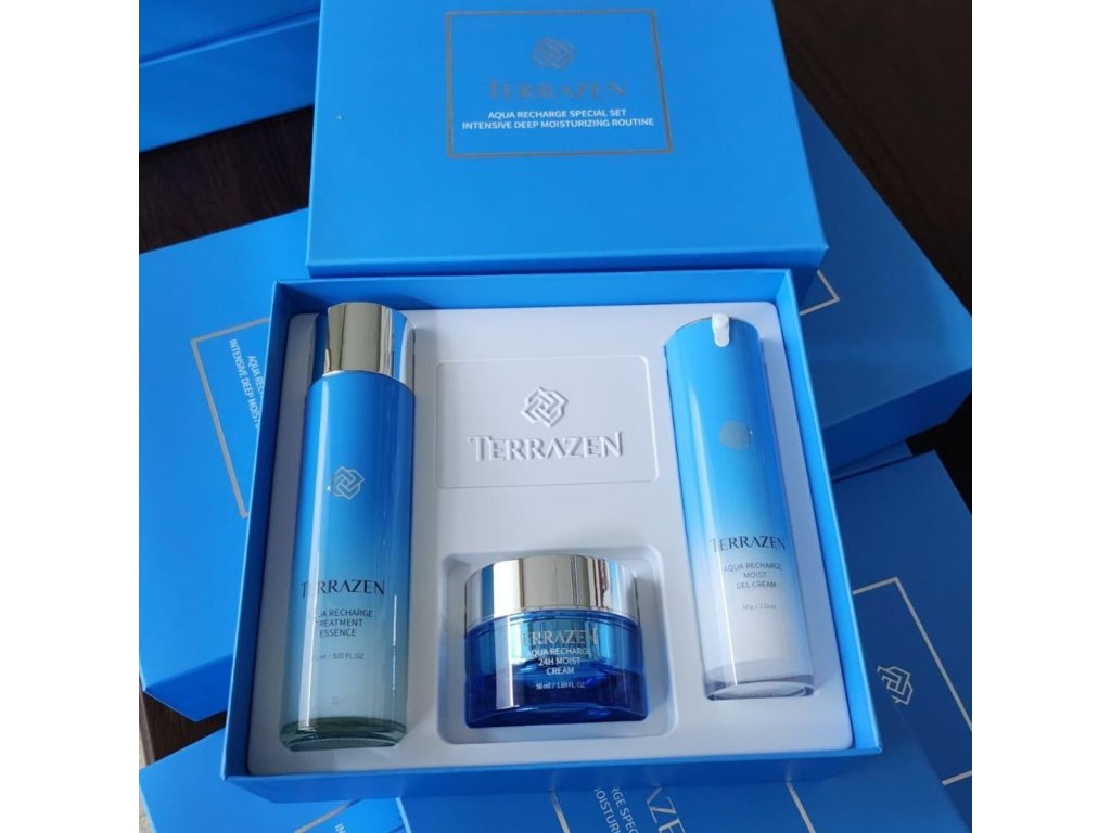 TERRAZEN - AQUA RECHEARGE SPECIAL SET - Intenzivní hydratační péče s prebiotiky a 7 druhy kyseliny hyaluronové 3 ks Limitovaná edice