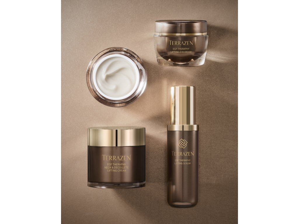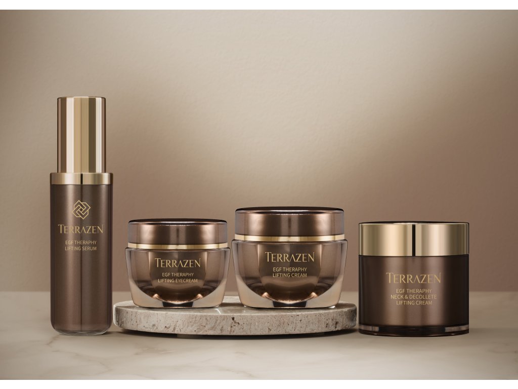 TERRAZEN – EGF THERAPY LIFTING SERUM (50 ml) Aqua, Glycerin, Glycereth-26, Butylene Glycol, Methyl Gluceth-20, Propanediol, Niacinamide, 1,2-Hexanediol, Hydroxyethyl Acrylate/Sodium Acryloyldimethyl Taurate Copolymer, Helianthus Annuus (Sunflower) Seed Oil, Diphenyl Dimethicone, C12-14 Pareth-12, Triethylhexanoin, Carbomer, Betaine, Trehalose, Panthenol, Ethylhexylglycerin, Hydrogenated Lecithin, Polyglyceryl-10 Oleate, Xanthan Gum, Adenosine, Polyglyceryl-10 Laurate, Tromethamine, Polyquaternium-51, Sorbitan Isostearate, Pentylene Glycol, Sodium Phytate, Arachidyl Alcohol, Behenyl Alcohol, Glyceryl Acrylate/Acrylic Acid Copolymer, Prunus Amygdalus Amara Kernel Oil, Camellia Sinensis Leaf Extract, Arachidyl Glucoside, Beta-Glucan, Jasminum Officinale Flower Water, Pyrus Malus Leaf Extract, Vanilla Planifolia Fruit Extract, Sodium Hyaluronate Crosspolymer, Benzyl Glycol, Tocopherol, Argania Spinosa Kernel Oil, Ascorbic Acid, Bakuchiol, Glucose, Ubiquinone, Hydrogenated Polyisobutene, Phytosterols, Leontopodium Alpinum Callus Culture Extract, Sodium Hyaluronate, Caprylic/Capric Triglyceride, Phosphatidylcholine, Hydroxypropyltrimonium Hyaluronate, Ceramide NP, Anemarrhena Asphodeloides Root Extract, Hydrolyzed Hyaluronic Acid, Sodium Acetylated Hyaluronate, Glycine, Hyaluronic Acid, Copper Tripeptide-1, Glutamic Acid, Hydrolyzed Sodium Hyaluronate, Serine, SH-Oligopeptide-1 (0.01 ppb), Alanine, Lysine, Arginine, Proline, Threonine, Potassium Hyaluronate, Dipeptide-2, Oligopeptide-1, Palmitoyl Pentapeptide-4, Tripeptide-1.
