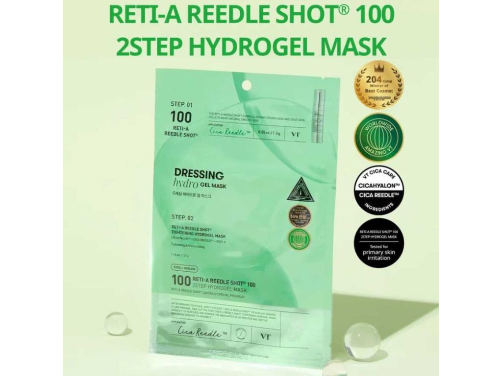 VT - RETI-A REEDLE SHOT 100 2 STEP HYDROGEL MASK - Dvoukroková regenerační hydrogelová maska s retinoidy a CICA REEDLE™ 1,5 g a 33 g